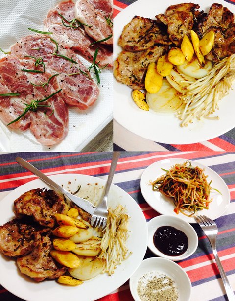 고기만 먹으면 심심하니까 고구마랑 양파랑 팽이버섯도 같이 구웠어용!