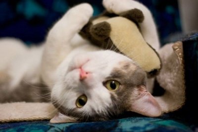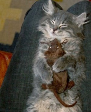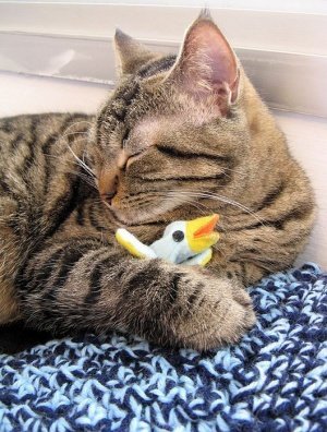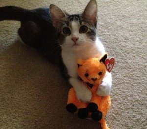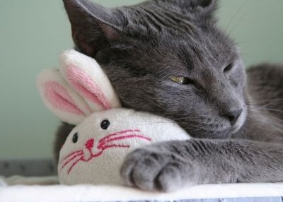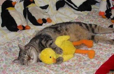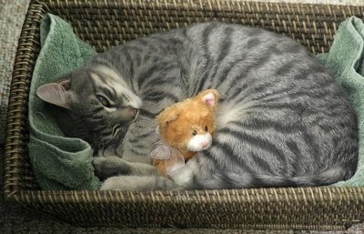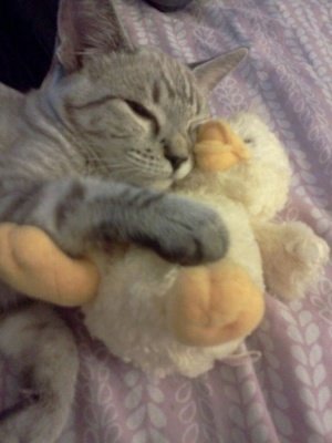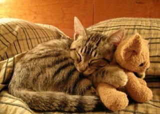 인형을 꼬옥 안고 있는 귀여운 고양이들
