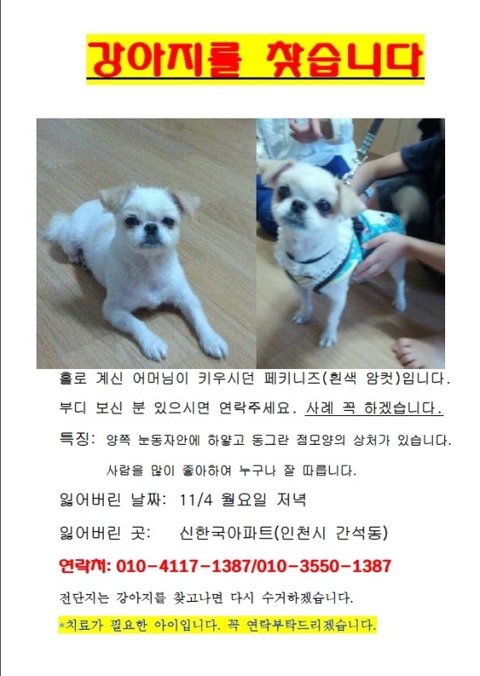 사례금 100만원 - 페키니즈 베티를 찾습니다.