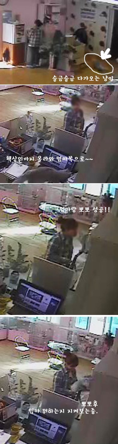 정수기 위에 올라와서 뽀뽀해주시면서 엄마가 뭐하나 지켜보고있더라구요^^;;;;