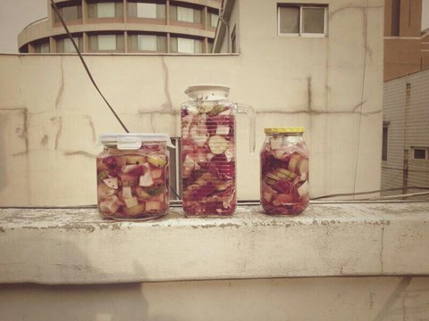 피클이 먹고싶어서 친구랑 피클을 담궜어요 이상한 자부심으로 예쁘게 찍어보겠다고