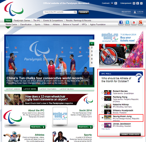 링크 타고 바로 화면 우측에 IPC POLL 부분에서 5번째의 정승환 선수 투표해주시길 부탁드립니다.