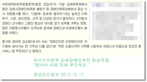 2013.10.15일 김해체육관에서 김해시장애인체육회 출범식 및 장애인체육대회가 있었어요.