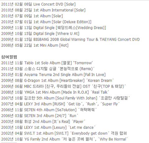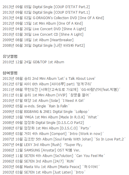 11) 빅뱅보다 선배그룹인 사람들에게는 경력, 실적 운운하지만 빅뱅의 경력,실적은 아무것도 아니라고 생각함 (빅뱅 올해 8년차 접어듬)