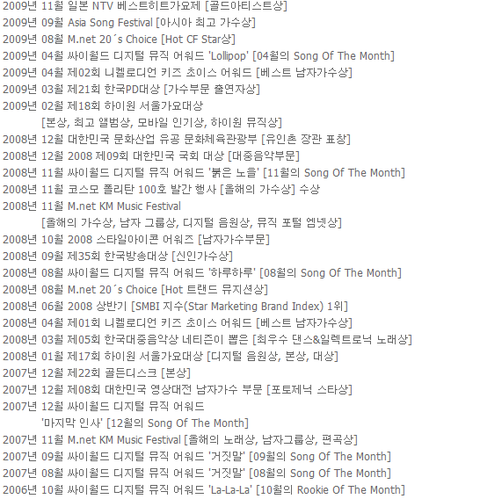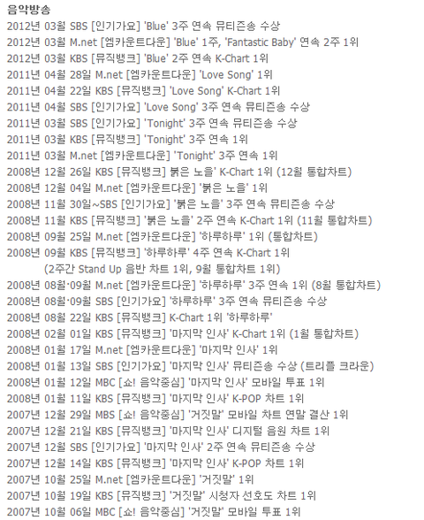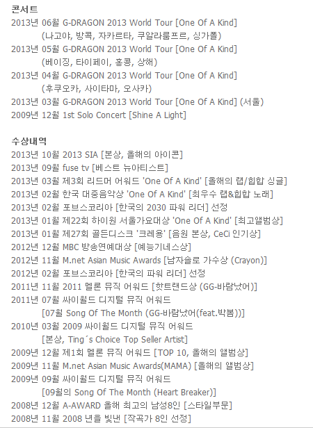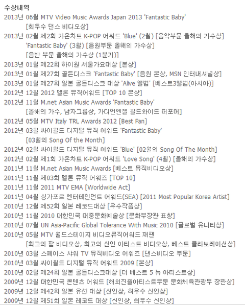 아까 말했던것처럼 빅뱅 지금까지의 수상 경력 정말 어마어마해요.