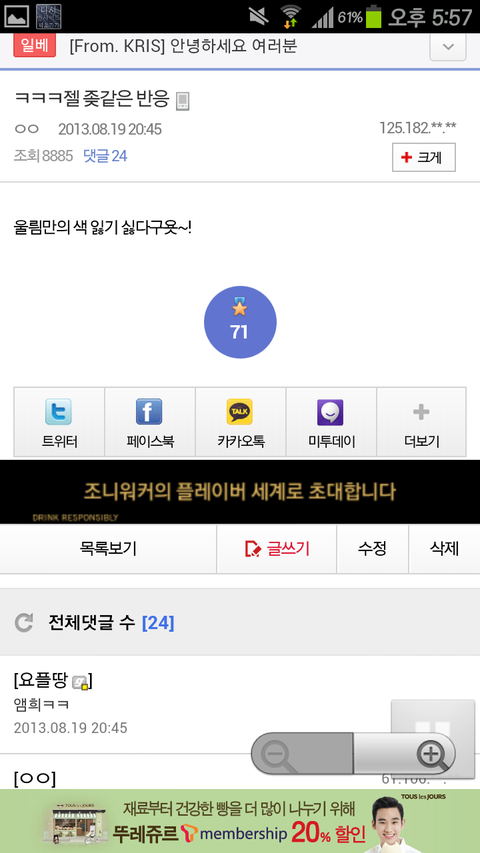 밑에 댓글몇개는 한심하다는듯 보는 사람들도잇긴한데 대부분은 같이욕하고 웃더라 ㅋㅋㅋ추천수좀봐;;;