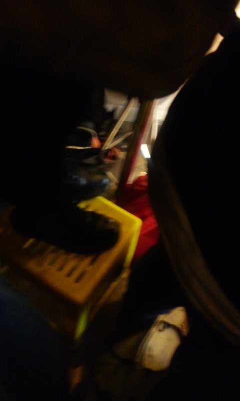 노란색이 플라스틱 의자고 그 위에 검은게 그 무개념팬 발입니다.