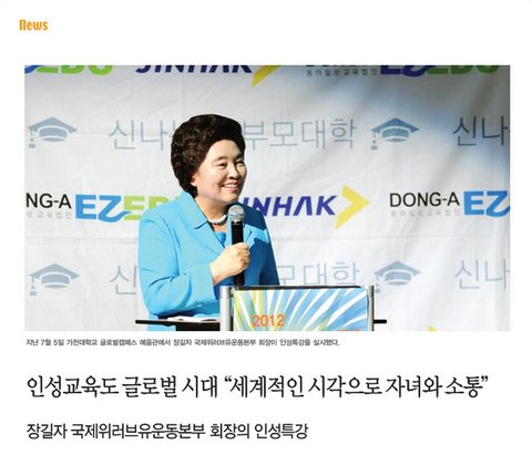 어머니의 마음으로 아픔을 어루만지는 사랑의 손길 국제위러브유운동본부&장길자회장님.