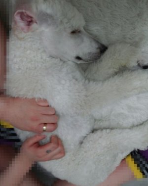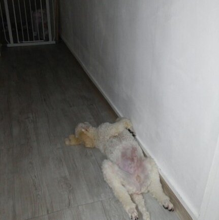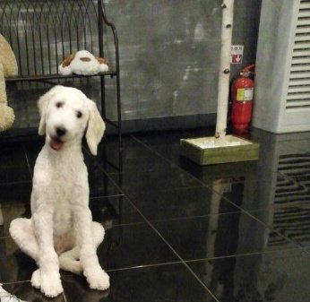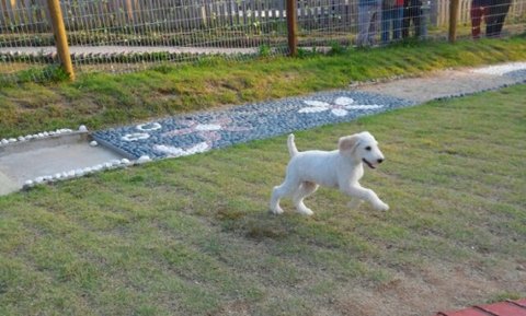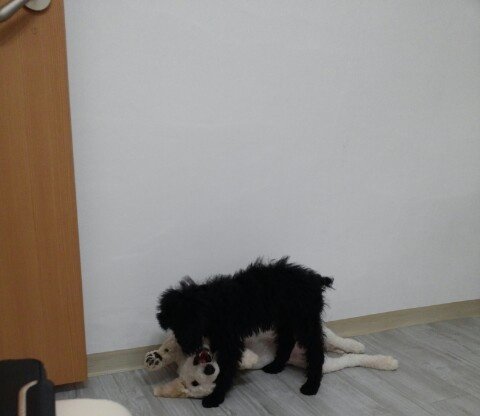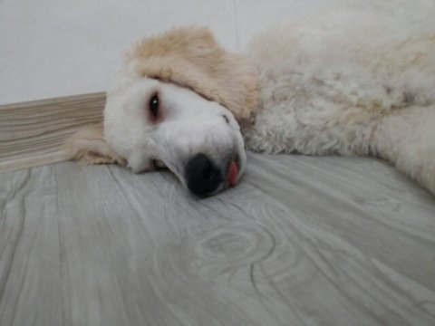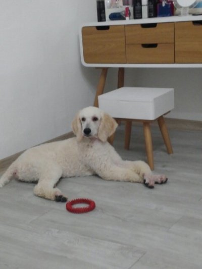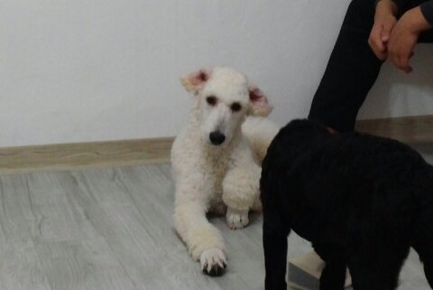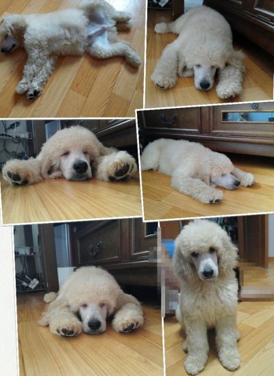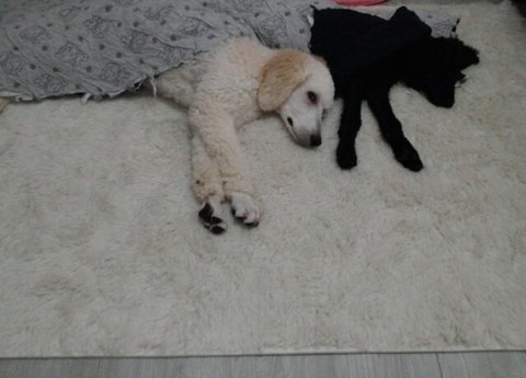스탠다드푸들 치고 사이즈가 작았어요 . 미키랑은 1개월도 차이 안나요 ~