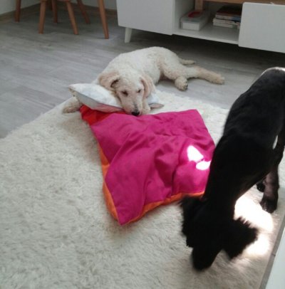 개집에 있던 배게,방석 물고나와서능 저러고 자는중 ㅋ..