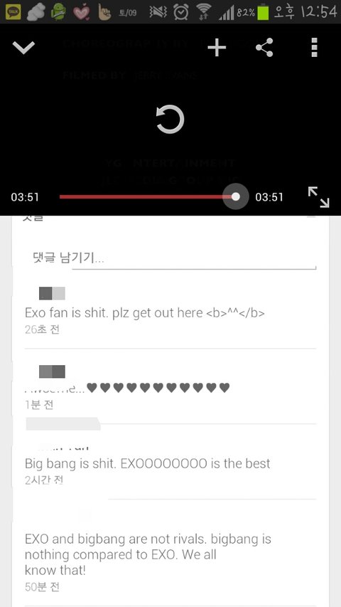 너흰 빅뱅 꺼지라하지만 난 엑소`팬` 꺼지라고 햇듬ㅋㅋ