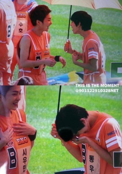 이번아육대때둘이장난치다가동우가민석이이름표가르키려던거잘못해서가슴만져서ㅋㄱㅋㅋ