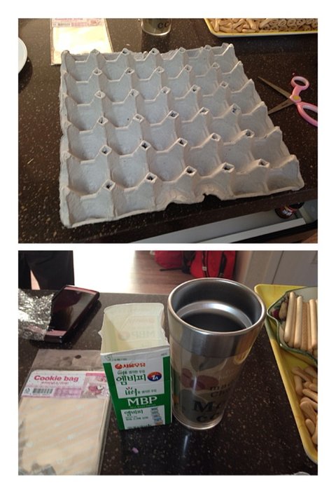 계란판. 빼빼로고정시킬때겁나좋음! 유용함. 그리고 기다란 통을준비시킴.