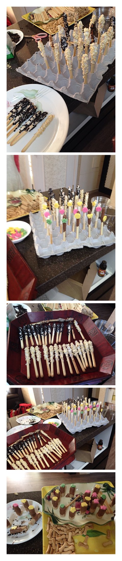 만드는과정없음....ㅜㅜ....그냥 중탕시킨 초코렛에 나무스틱 투척 초코렛을 골고루 묻히고 아몬드가루랑 쿠키가루 위로 딩굴딩굴 시켜드림.이 과정은 손에 초코렛이 묻어서 사진이없음...오로지 빼빼로만만질수있었음 ㅜㅜ 저렇게 사진처럼 만들만들했다뇽 아근데 생각외로 쿠키만드는 것보다 더 손이 많이가고 힘듬 ㅜㅜ아진짜멘탈이붕괴됨