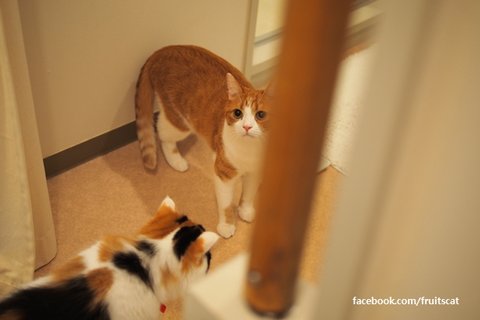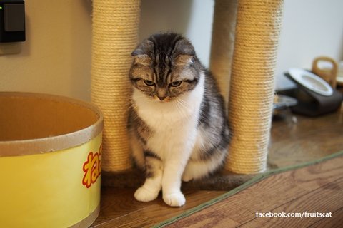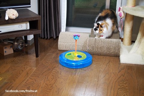 퐁 ' 집사양반이 이상한 거 가져왔네... 뭐여 이 노랑물체는??'