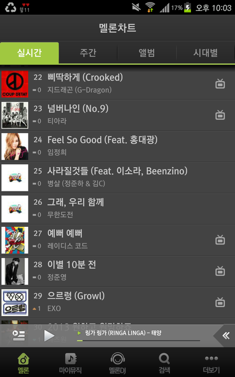 어차피 지디 삐딱하게 음원이 멜론 순위도 더 높고.. 니가뭔데도 음원 종합한 가온차트에서도 지디가 쭉 높았음...멜론 찰나 캡처한거가져오지말고 동일기간 가온차트 가져오세요. 가온차트를 봐야죠. 진짜 엑소팬들 미쳤나봐...ㅋㅋㅋ. 객관적인 수치 자체가 지디 음원이 더 높은데 왜저래..ㅋㅋㅋ