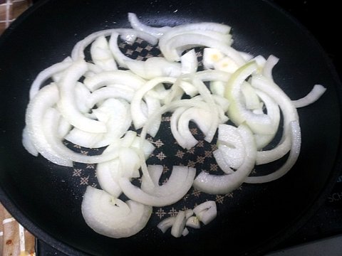 팬에 기름 두른 후에 양파를 볶아 주세요~ 투명해지기 시작 할 때까지~