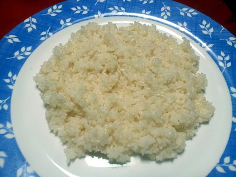 넓은 접시나 그릇에 밥을 펴서 담아줍니다 ~