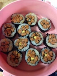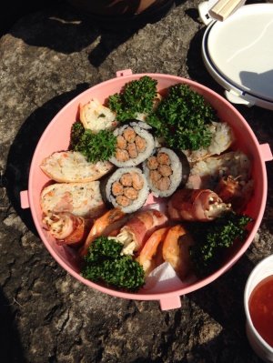벚꽃을 표현하려 했던 김밥과 고로케~ 불꽃슛이라고 했다가 혼났음 ㅠㅠ