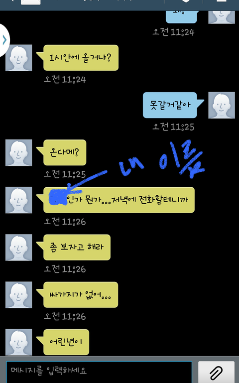 친구가 문자창인가? 뭐 메세지 지우는거 그거 지워서 그 말이 없어져서