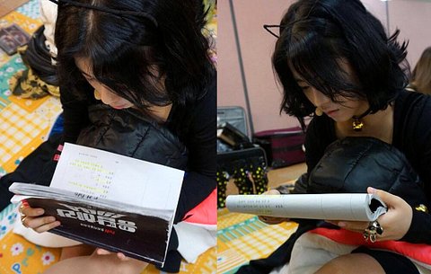 무대의상 입고 대본 공부하는 윤진이 아니 도희
