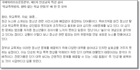 그러나 왕따와 폭력문제를 가지고서는 밝고 희망을 미래를 만들 수 없다며