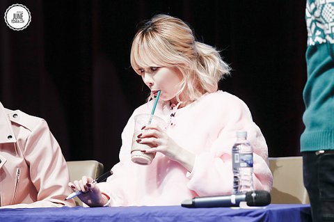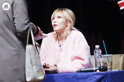 최근 팬사인회에 거대한 앙고라 니트를 입고 온 현아