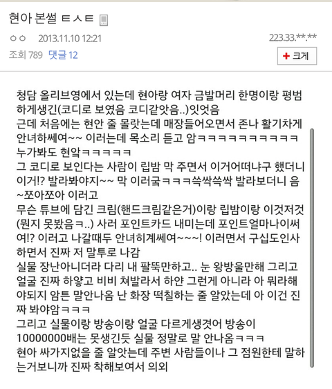 아 옷이 현아를 입은건지 현아가 옷을 입은건지...ㅋㅋㅋㅋㅋㅋ