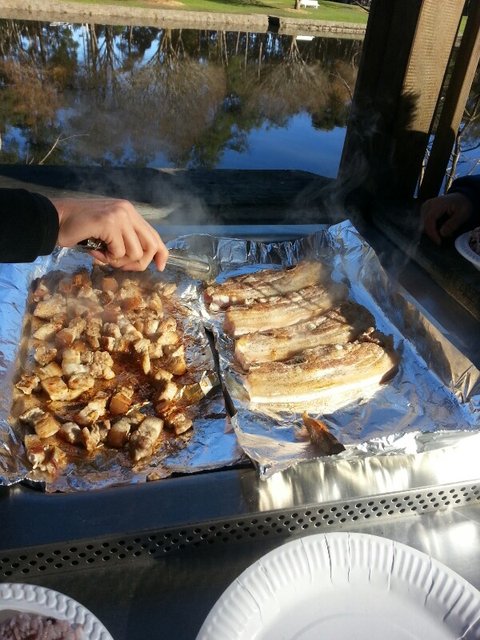 2시간쯤 가다가 배가고파서 바베큐파티를 하기로함!!!