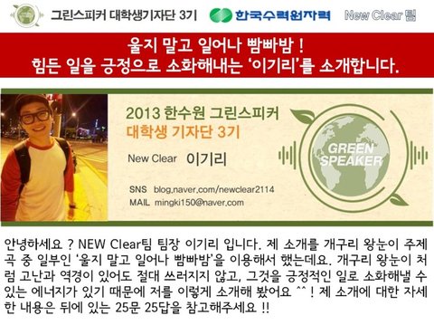 뉴스 레터 : http://blog.naver.com/newclear2114/198532851
