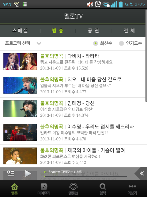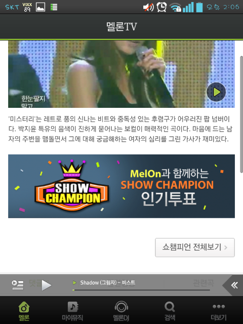 거기서 방송에있는 쇼챔 영상 아무거나 들어가면