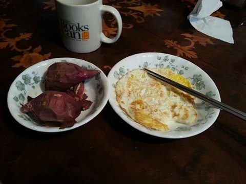 그냥 달걀후라이에 삶은 고구마라고하면 되지 등신같이 보일드 스윗 포테이토는 모냐 그거보고 안읽엇다
