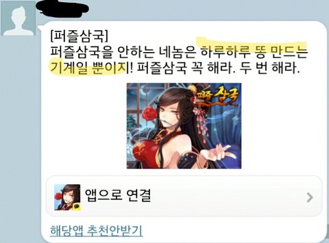 오늘 친구한테 카톡겜 퍼즐 삼국지 인가 그거 초대가 왔어