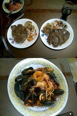 엄마가 양식을 좋아하셔서 고기 굽고 홍합이랑 새우 사서 다 손질하고 만든 파스타임