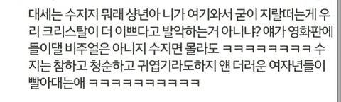 이거말고훨씬더많은데 12장밖에못올림...ㅜㅜ수지팬들은 수지보고 "이쁘긴이쁜데 배우도넘을만한얼굴이라는건 오바다" 라는식으로말해도 무조건열폭오크녀로 싸잡아서욕하던데 거울좀보고오시길...ㅋㅋ타여자아이돌좀 그만욕하시고ㅋㅋ