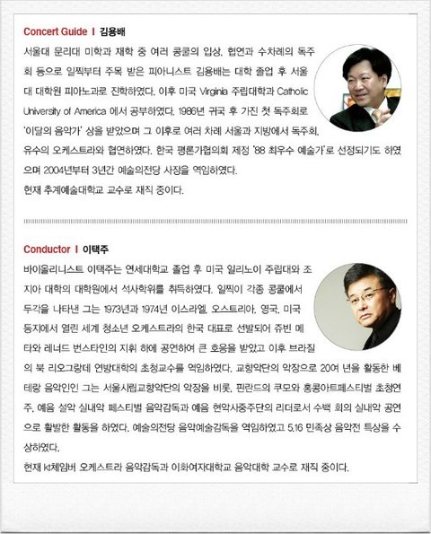 출 연 : 해설 김용배 (추계예술대학 교수), 지휘 이택주 (이화여자대학교 교수) ,