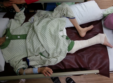 간호사에게 가서 이게 어떻게 된 일이냐고 묻자 “할머니가 새벽에 혼자서 손목에 묶여 있는 끈을 풀고 침대 위에서 뱅글뱅글 돌다가 침대 사이드에 다리가 끼시는 바람에 다쳤다”라고 대답했습니다.