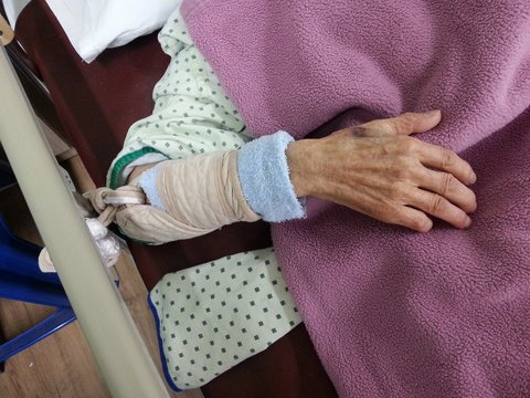 그런데 어떻게 혼자서 손목에 묶여 있는 끈을 푸시고 침대위에서 돌아다니실 수 가 있을까요?