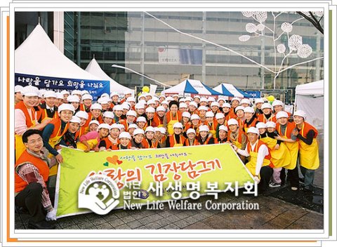 오전 11시경 이곳에 주황색 조끼를 입고 노란 앞치마를 두른 인파가 모여들며 활기를 띠기 시작했습니다. 이들은 바로 대한적십자사(서울지사)와 서울특별시, 문화일보에서 공동 주최하는 '함께하는 김치 희망릴레이'행사에 초청받은 새생명복지회(현.국제위러브유운동본부) 회원들이었습니다. 김치를 담가 독거노인, 소년소녀가장, 장애인 등 빈곤·소외계층에게 전달하는 이 행사에, 새생명복지회(현.국제위러브유운동본부)에서는 '김장베테랑'인 주부회원들을 중심으로 100여 명의 회원들이 각자 회비를 내고 자원한 것입니다.