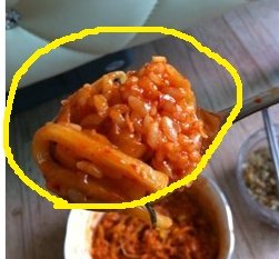 위에 사진에 노란색그린데까지 한번에 떠서 먹는다고 보면됨.
