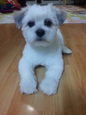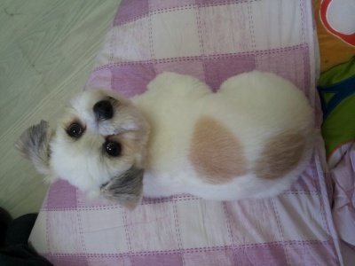 처음 키워보는 강아지라 가위로 털을 잘라주어 엉망......ㅠㅠ
