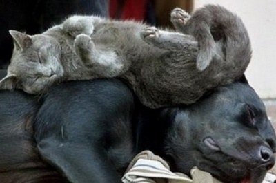 특이한 자세로 잠든 고양이&강아지