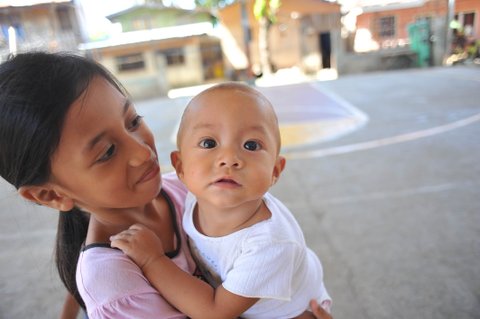 "애기가 애기를 안고 있네."