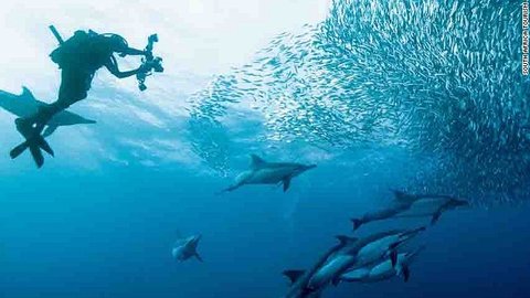 정어리떼의 거대한 이동에는 상어, 돌고래, 물개 등이 뒤를 따른다.