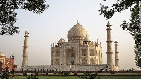 흰색 대리석으로 지은 웅장한 묘당인 타지마할은