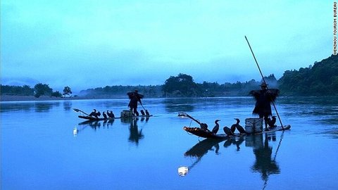 중국은 다양한 곳에서 가마우지를 이용한 낚시를 하고 있다.
