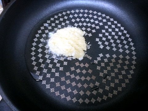 우선 팬에 기름을 두른 후 다진 마늘을 넣고 볶아 줍니다.