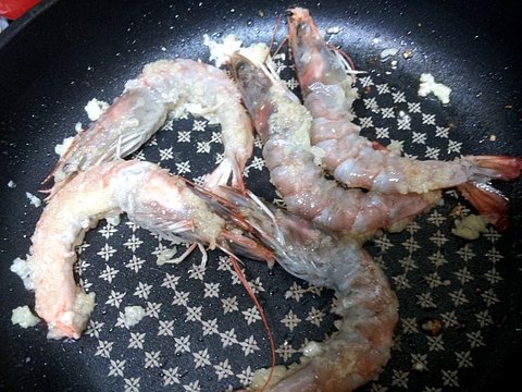 우선 흰다리 새우부터 넣고 볶아 줍니다 크니까 익는데 조금 시간이 걸리드라구요
