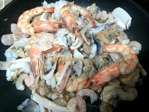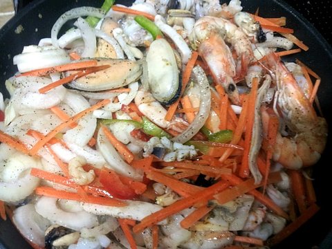 해물들이 색이 변할때 야채들을 투하