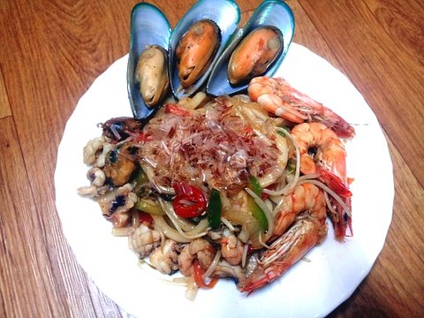 오늘의 요리는 해물 볶음우동입니다.